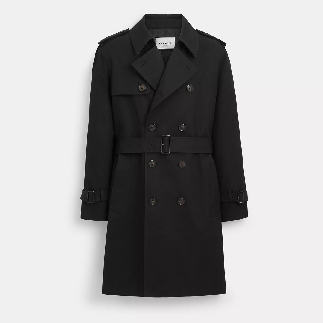 70 % algodón, 30 % poliéster Forro del cuerpo: 58 % poliéster, 42 % viscosa Forro de las mangas, revestimientos y bolsillo: 56 % poliéster, 44 % viscosa Detalles de cuero Cierre de botones Bolsillos deslizantes Cinturón ajustable en la cintura Largo: 40 Limpieza en seco La modelo mide 188 cm y usa una talla M