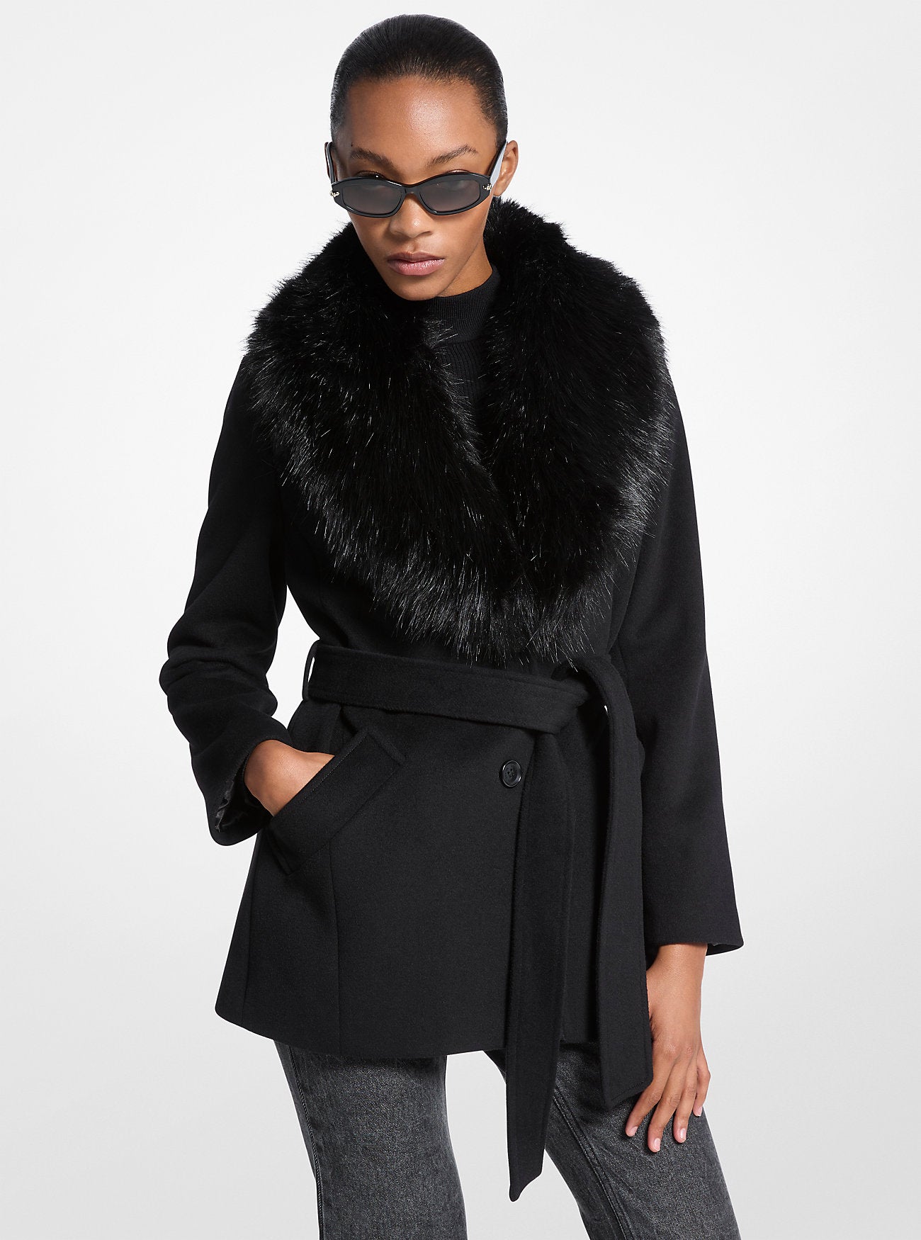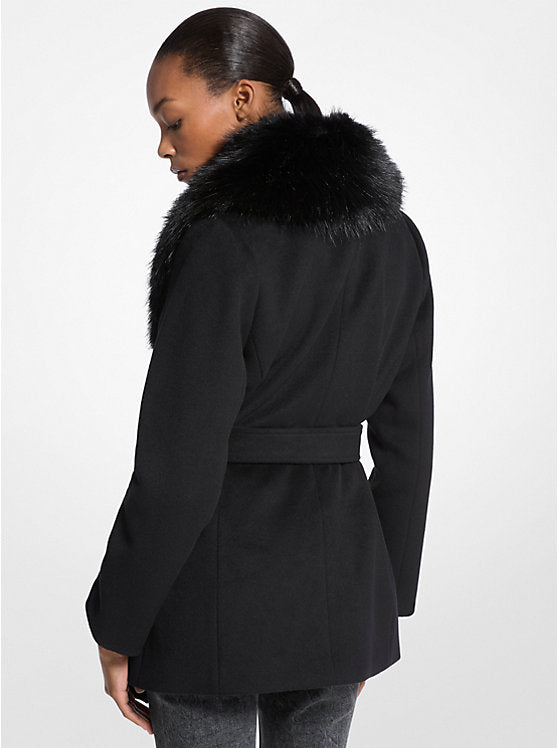 ššššššš šššš Abrigo de mezcla de lana con ribete de piel sintĆ©tica MK0061