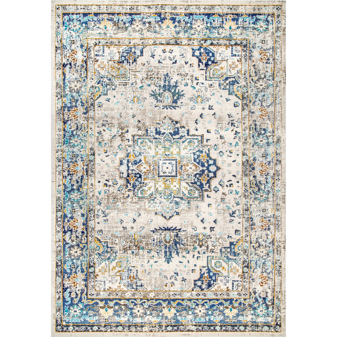 El diseño de medallón desgastado de esta alfombra combina un estilo vintage con la comodidad y funcionalidad. Esta singular combinación de colores aporta encanto a cualquier espacio.