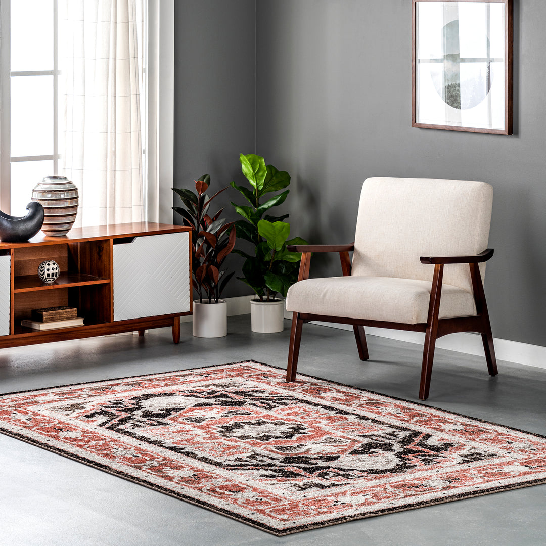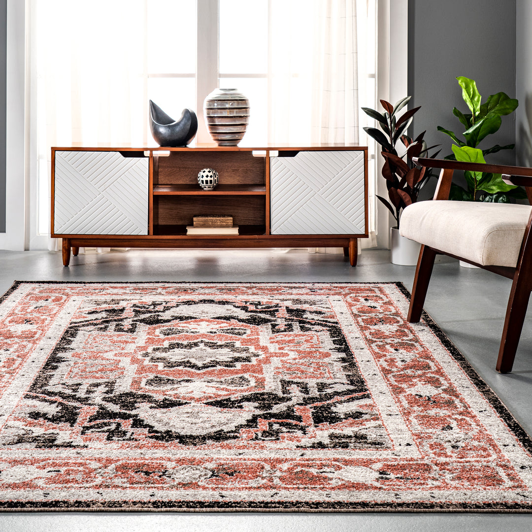 𝐍𝐔𝐋𝐎𝐎𝐌 Alfombra Deanna de mezcla de algodón con medallón tradicional desgastado NU029