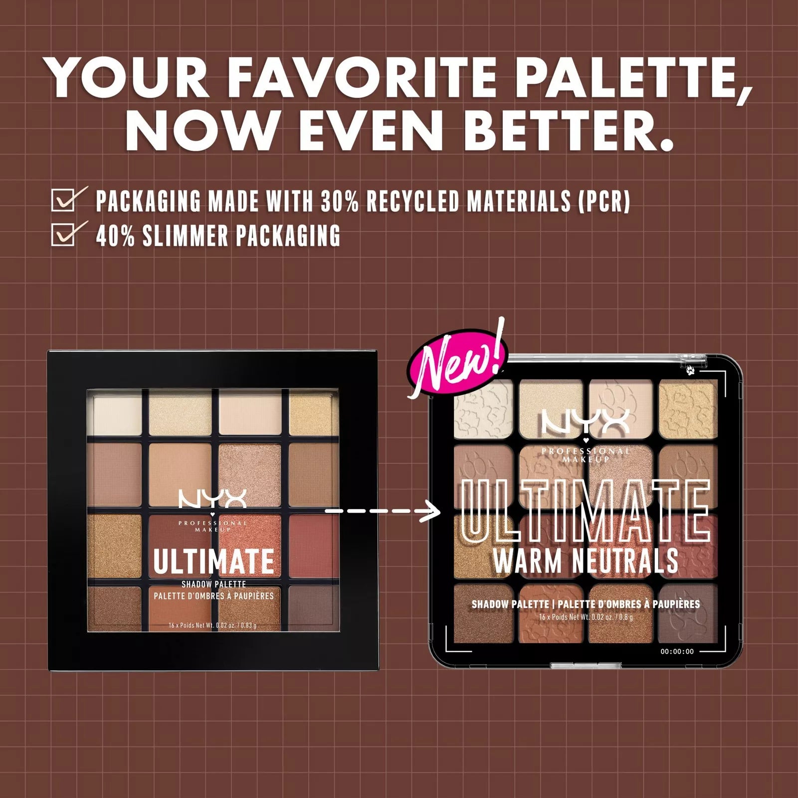 Realza tu look con la Ultimate | Shadow Palette Warm Neutrals de NYX Professional Makeup. Repleta de 16 tonos veganos pigmentados para complementar, para cualquier tono de piel.